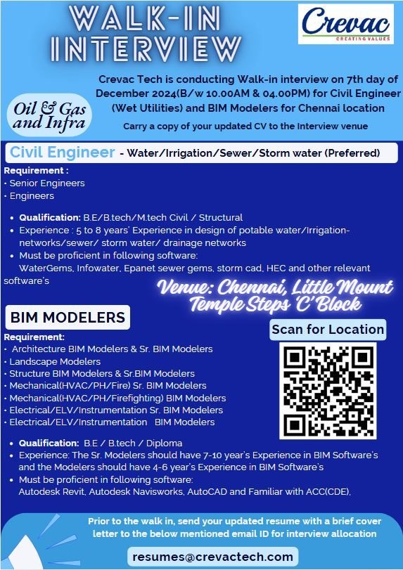 Civil Engineers & BIM Modelers Job Vacancy Please send your resumes to given email id only. Please don’t upload the resumes in the website. Job Category: Civil Engineers & BIM Modelers Job Vacancy Job Type: Full Time Job Location: Chennai Email: resumes@crevactech.com Apply for this position Full Name *Email *Phone *Cover Letter *Upload CV/Resume *Allowed Type(s): .pdf, .doc, .docxBy using this form you agree with the storage and handling of your data by this website. *