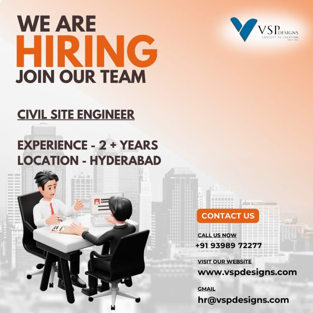 Civil Site Engineer Job Vacancy Please send your resumes to given email id only. Please don’t upload the resumes in the website. Job Category: Civil Site Engineer Job Vacancy Job Type: Full Time Job Location: Hyderabad Email: hr@vspdesigns.com Apply for this position Full Name *Email *Phone *Cover Letter *Upload CV/Resume *Allowed Type(s): .pdf, .doc, .docxBy using this form you agree with the storage and handling of your data by this website. *