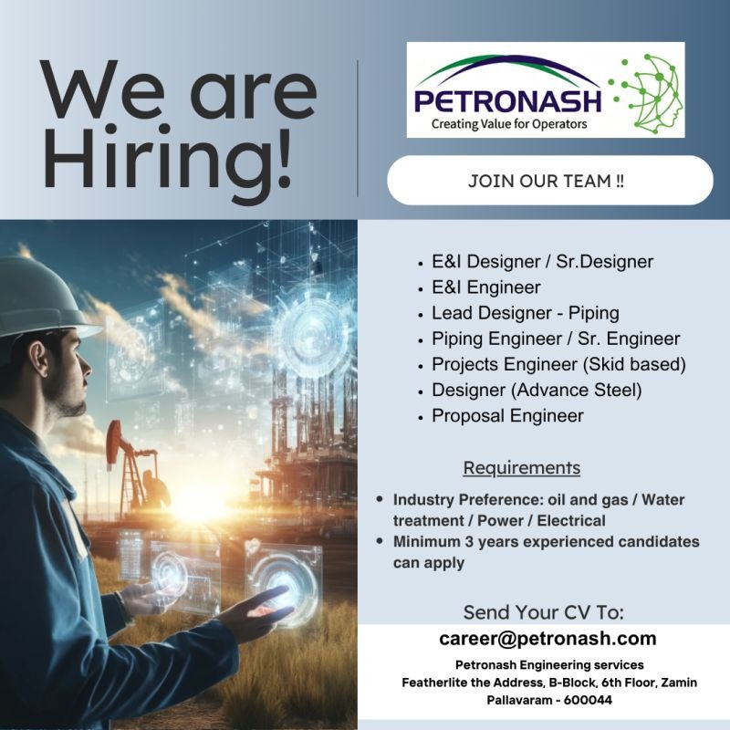 Job Category: E&I Designer & Engineer/Sr.Designer / Lead Designer-Piping / Piping Engineer/Sr.Engineer/ Projects Engineer (Skid Based) / Proposal Engineer Job Vacancy