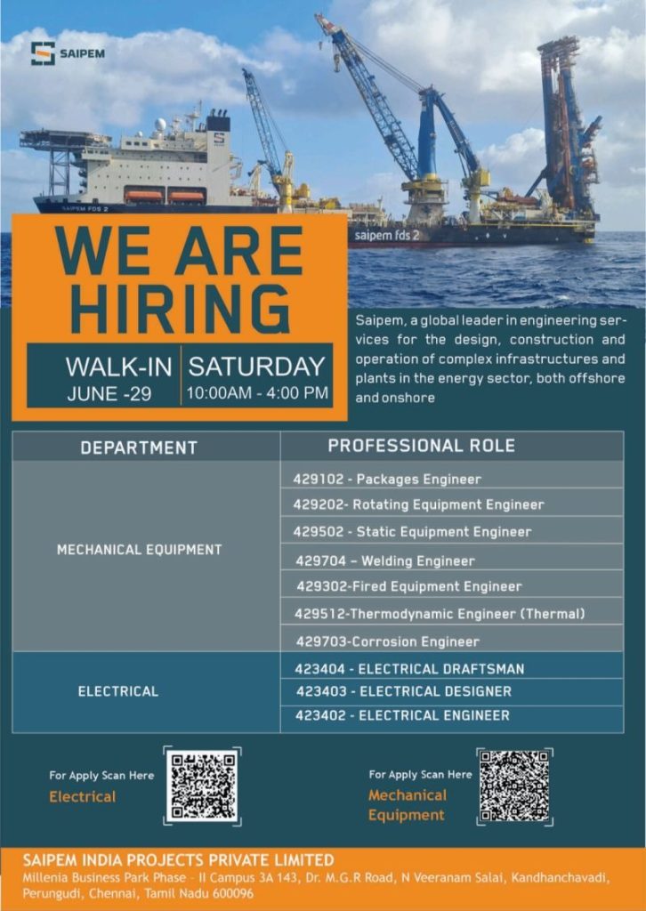 Saipem India Projects Pvt Ltd Job Vacancy Job Category: Saipem India Projects Pvt Ltd Job Vacancy Job Type: Full Time Job Location: Chennai Apply for this position Full Name *Email *Phone *Cover Letter *Upload CV/Resume *Allowed Type(s): .pdf, .doc, .docxBy using this form you agree with the storage and handling of your data by this website. *