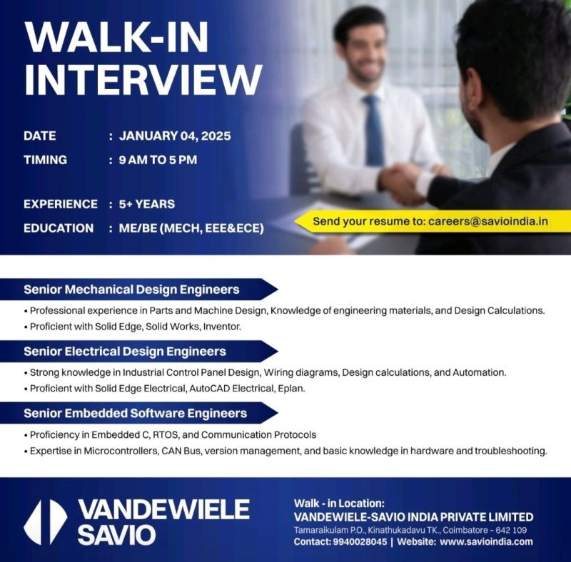 Job Category: Senior Mechanical Design Engineers / Senior Electrical Design Engineers / Senior Embedded Software Engineers Job Openings